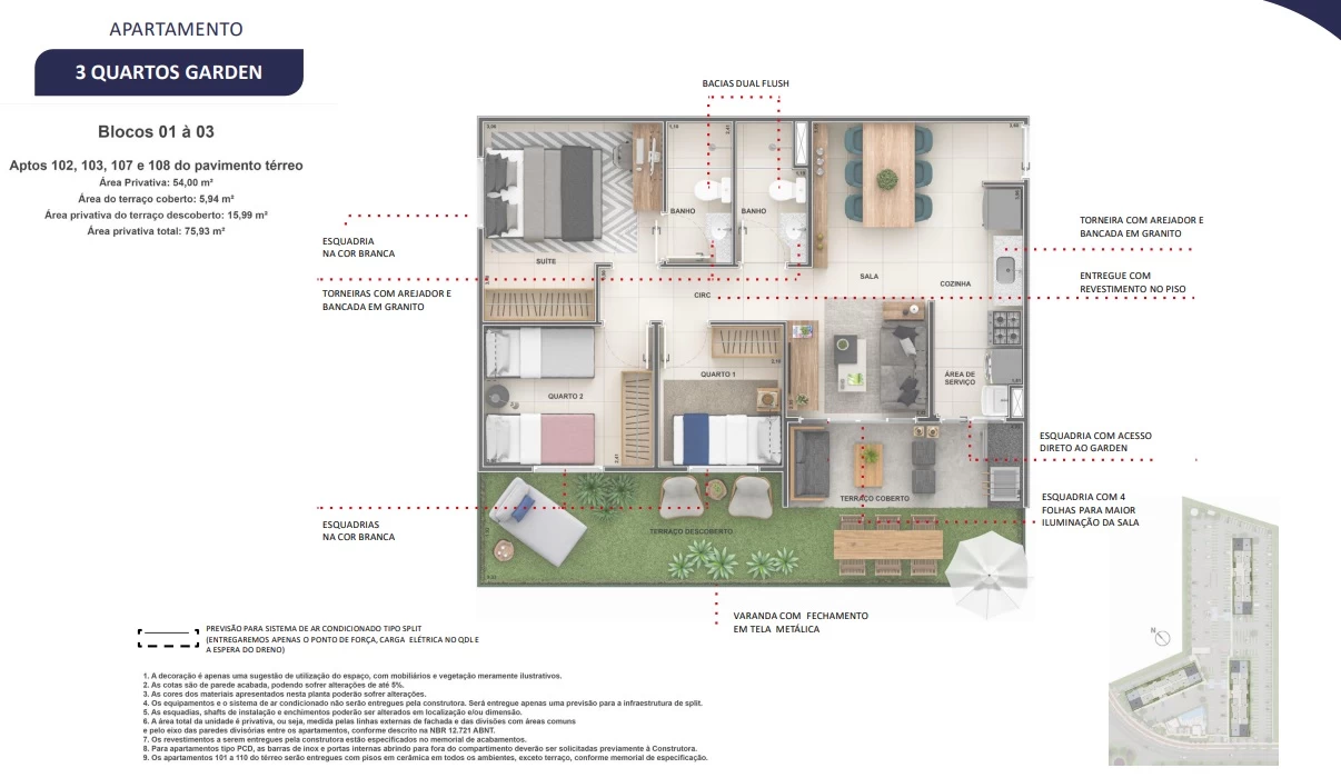 Interno, Fitness Externo, Playgound, Brinquedoteca, Salão de Jogos, Pet Place,